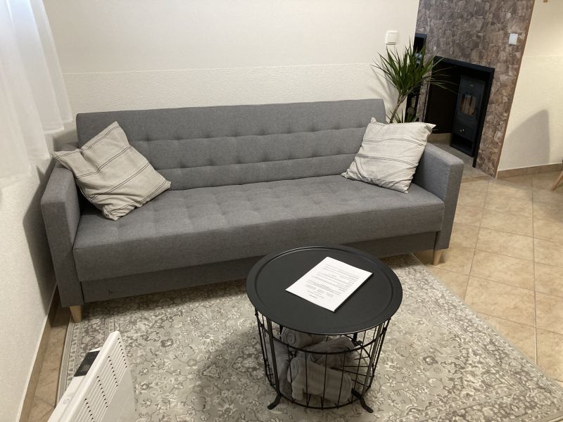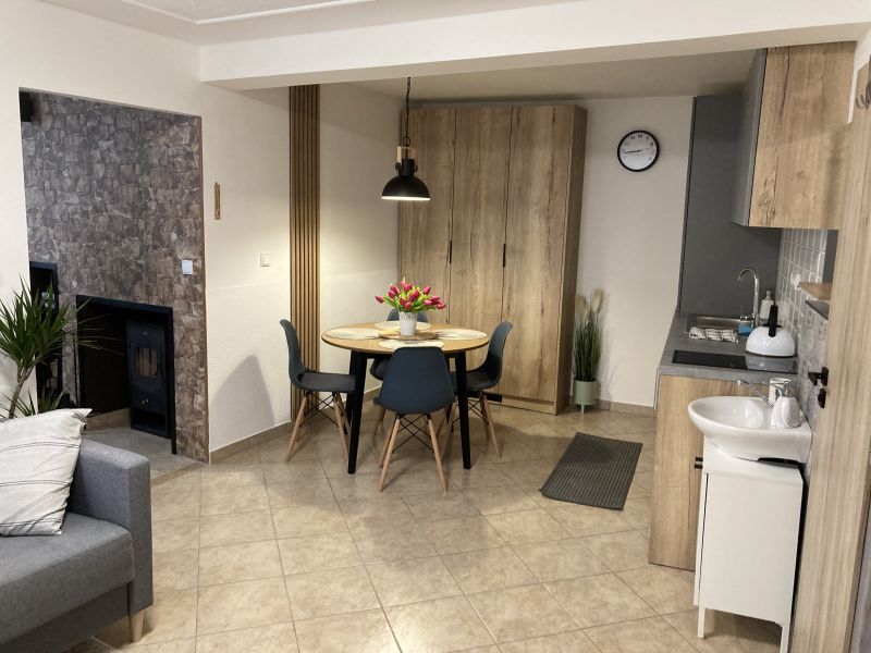 Apartmán se samostatným vchodem je 4-lůžkový s možností přitýlky (rozkladací pohovka o rozměru 190x130cm) vyspí se zde dvě děti nebo dvě útlé osoby :). Je k dispozici je během celého roku. Kuchyně apartmánu je funkčně vybavená, poslouží Vám keramická varná deska, mikrovlnná trouba, topinkovač i lednička. Umístěn je zde i jídelní stůl. V ložnici s krbovými kamny a televizi najdete manželskou postel a rozkladací postel 200x160cm. V apartmánu je samozřejmě i koupelna se sprchovým koutem a oddělenou toaletou.